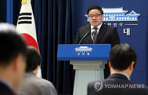 | △ 순방 성과 브리핑하는 경제수석 (서울=연합뉴스) 도광환 기자 = 안종범 청와대 경제수석이 10일 오후 춘추관에서 중동 4개국 순방 성과 등에 대해 브리핑하고 있다. |