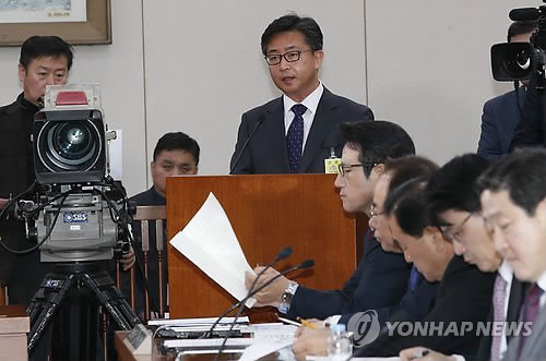 | △ 모두 발언하는 홍용표 통일부 장관 후보자 (서울=연합뉴스) 이상학 기자 = 홍용표 통일부 장관 후보자가 11일 오전 국회 외교통일위원회에서 열린 인사청문회에서 모두발언을 하고 있다. |