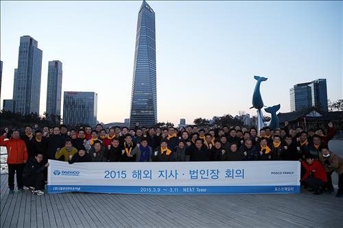 △ 대우인터내셔널이 9∼11일 사흘간 인천 송도 대우인터내셔널 사옥에서 전 세계 50여개국에 파견된 해외지사·법인장과 국내 임원이 참가하는 '2015 해외 지사·법인장 회의'를 개최했다.