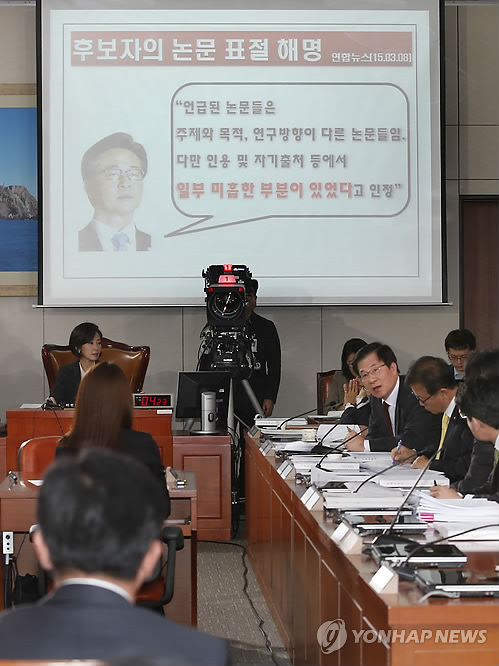 신경민 의원은 홍 후보자의 학자 시절 논문 셀프표절 의혹을 제기하며 "새끼논문, 손자논문을 만드는 데 상당히 특출한 재간이 있다"면서 "학자적 양심으로서 도저히 믿을 수 없다"고 지적했다.