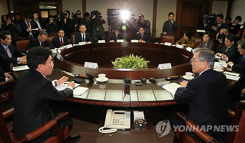 최저임금 문제에 대해선 "중소기업에서도 최저임금 인상에 대해 반대만 할 게 아니라 그럴 경우 어떤 보완책이 마련돼야 하느냐에 대해서도 유연하게 논의하기를 바란다"고 촉구했다.