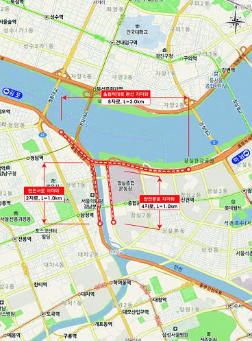 이 구간이 지하화되면 올림픽대로 영동대교 남단∼종합운동장 폭 8차로, 연장 3㎞ 구간, 탄천 동로(4차로)와 서로(2차로) 각 1㎞ 구간의 상부가 공원화된다.
