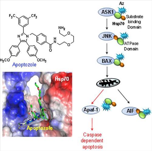 그 결과 아폽토졸은 암세포 내에서 HSP70이 세포자살(apoptosis)에 중요한 역할을 하는 인자인 에이팝-1(APAF-1)과 상호작용 하는 것을 막아 암세포의 자살을 유도하는 것으로 확인됐다.