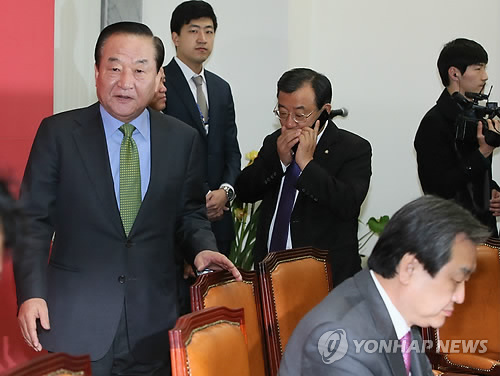 | △ 새누리당 최고위원회의 (서울=연합뉴스) 진성철 기자 = 새누리당 김무성 대표(오른쪽 부터), 이정현, 서청원 최고위원이 16일 국회에서 열린 최고위원회의에 입장하고 있다. |