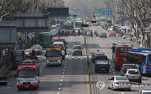 같은 시간 서울 중구 중부소방서에서 출발한 길 터주기 훈련 소방서 차량들도 비슷한 상황에 막혀 속도를 내기가 쉽지 않았다.