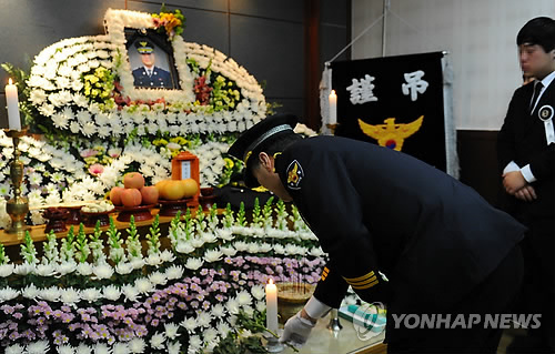 | △ 지난 달 27일 오전 경기도 화성시 남양동에서 발생한 총기살인 사건으로 숨진 남양파출소 이강석 경감의 빈소가 마련된 마도면 두곡리 화성장례식장 (연합뉴스 자료사진) |