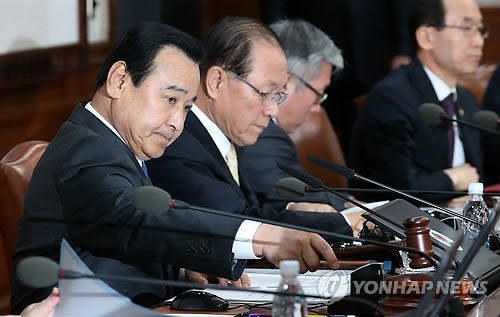 △ 정부, 국무회의서 김영란법 심의 (서울=연합뉴스) 전수영 기자 = 이완구 국무총리가 24일 오전 서울 세종로 정부서울청사에서 열린 국무회의에서 개회를 선언하고 있다. 정부는 이날 정부서울청사에서 이완구 국무총리 주재로 국무회의를 열어 김영란법 공포안을 심의, 의결했다.