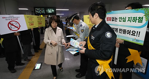 경찰은 성범죄가 자주 발생하는 봄철을 맞아 25일 오전 8시부터 한시간 동안 서울 시내 주요 환승역 21개소에서 '지하철 성범죄 예방 합동 캠페인'을 실시한다.