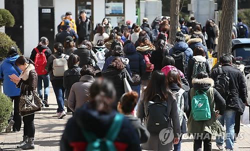 | △ 지난 14일 서울 송파구 잠실고등학교에서 열린 한 9급 공무원 임용 필기시험을 치른 수험생들이 교정을 나서고 있다. |
