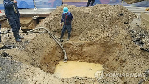 현재 상수도관을 보수하는 공사와 도로 침하 부분을 복구하는 공사가 진행 중이다.
