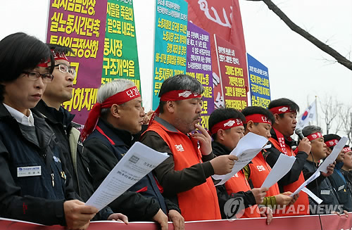 민주노총도 이날 오후 전체 산하 조직 조합원 700여명이 참석한 가운데 1박2일 상경 집회를 열고 노숙농성을 할 계획이다.