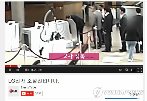 △ 지난해 독일 가전전시회 IFA에서 삼성전자의 세탁기를 고의 파손한 혐의로 재판에 넘겨진 LG전자 홈어플라이언스(H&A) 사업본부장 조성진 사장이 유튜브에 공개한 당시 상황을 담은 CCTV 영상 (유튜브 캡처)