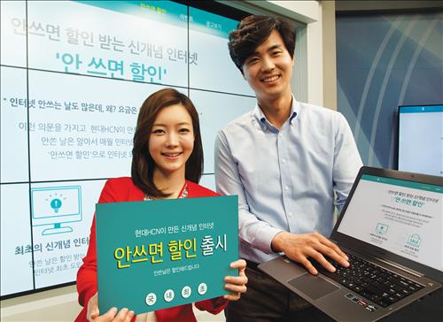 (서울=연합뉴스) 김은경 기자 = 종합유선방송 현대HCN은 고객의 인터넷 사용 일수가 적으면 그만큼 할인해 주는 '안쓰면 할인' 인터넷 요금제를 출시한다고 31일 밝혔다.