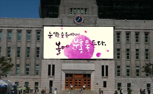 '볼에 분홍 물드는 봄' 서울도서관 외벽문구 새단장
