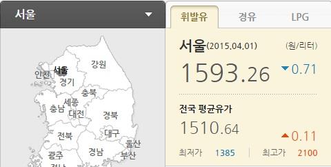 2월 초까지만해도 휘발유를 ℓ당 1천245원에 파는 주유소가 있었지만, 현재 1천385원이 최저가이다.