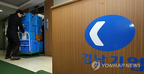 | △ 자원개발 비리 의혹을 수사중인 서울중앙지검 특수1부 관계자들이 지난달 18일 압수수색을 실시한 서울 동대문구 답십리동 경남기업 본사에서 압수품을 들고 나오고 있다. |