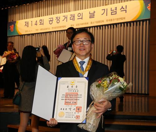 (서울=연합뉴스) 옥철 기자 = 이동근 대한상공회의소 상근부회장이 1일 서울 중구 세종대로 상의회관에서 열린 제14회 공정거래의 날 기념식에서 국민훈장 모란장을 받았다고 대한상의가 이날 밝혔다.
