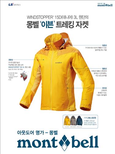 (서울=연합뉴스) 전준상 기자 = LS네트웍스의 아웃도어 브랜드 몽벨(www.montbell.co.k)은 봄철용 경량 윈드 스토퍼 재킷 '이븐'을 6일 출시했다.