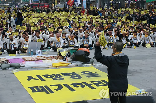 시민단체도 동참…"참사 1주기 이전에 세월호 선체인양 공식 선언하라"