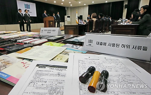 | △ 서민전세자금 대출 사기 '160억 꿀꺽' (서울=연합뉴스) 김주성 기자 = 무주택 서민들을 위해 정부가 보증하는 서민전세자금 대출의 허술함을 악용해 거액을 챙긴 일당이 검찰에 무더기로 적발됐다. 서울남부지검 형사5부는 6일 서울남부지검 회의실에서 브리핑을 열고, 허위 재직증명서로 국민주택기금 등을 재원으로 하는 서민전세자금을 대출받아 이를 가로챈 혐의(사기)로 123명을 구속기소하고 158명을 불구속 기소했다고 밝혔다. 이날 브리핑에서 공개된 대포통장과 위조서류 등 압수품. |