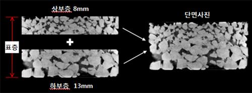 작은 골재를 상부층에, 큰 골재를 하부층에 포설해 복층구조를 만들고 골재 사이의 틈을 키우는 이 기술로 일반포장 도로보다 소음은 9데시벨(㏈)이상 낮추고 내구성은 2∼3배가량 높였다고 이 회사는 설명했다.