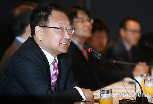 | △ 모두발언하는 유일호 장관 유일호 국토교통부 장관(왼쪽)이 8일 오전 서울 서초구 더팔래스호텔에서 열린 건설단체와의 조찬간담회에서 모두발언하고 있다. |
