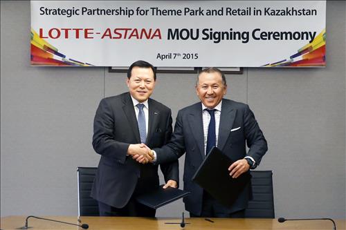 협약에 따라 롯데그룹은 롯데월드 어드벤처 운영 경험을 테마파크 사업에 지원하고 아스타나그룹은 롯데의 다양한 유통채널 도입 방안을 검토할 계획이다.