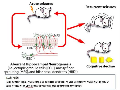 연구팀은 난치성 측두엽 뇌전증을 일으킨 생쥐 실험을 통해 비정상적인 해마 신경 줄기세포의 분화를 확인했다. 이 때문에 머릿속에 비정상적인 신경세포가 만들어졌고, 이게 결국 뇌전증으로 이어졌다는 게 연구팀의 설명이다.
