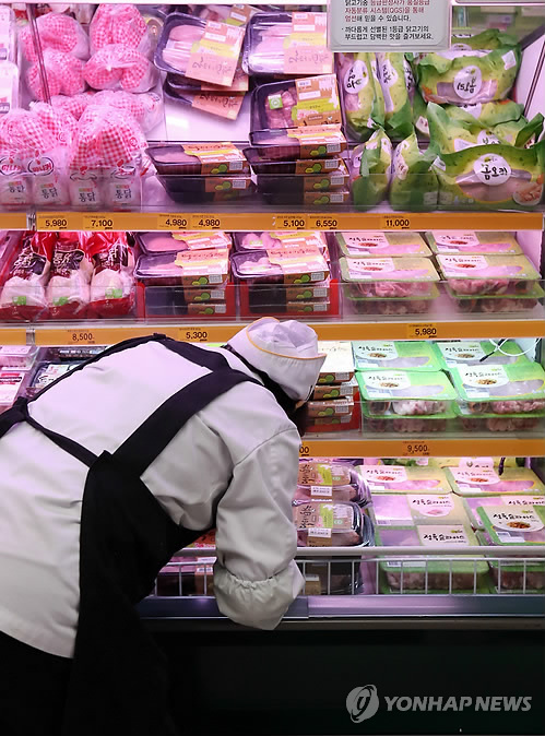| △ 한 대형마트 정육 코너에 진열된 닭고기(연합뉴스 자료사진) |