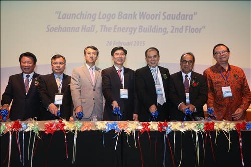 | △ 지난 2월26일 저녁 인도네시아 현지에서 열린 우리소다라은행 공식 출범식에서 이광구 우리은행장(사진 가운데)이 우리소다라은행 및 유관기관 관계자들과 기념떡 커팅을 하고 있다. |