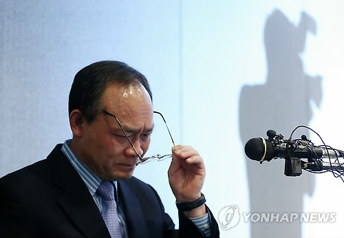 | △ 성완종 전 경남기업 회장 행방불명…유서 쓰고 가출 (서울=연합뉴스) 자원비리 관련 검찰 수사에서 250억원 가량의 회삿돈을 횡령한 혐의로 영장이 청구돼 9일 영장실질 심사를 앞둔 성완종 전 경남기업 회장이 집에 유서를 남기고 잠적했다. 경찰에 따르면 성 회장은 이날 오전 5시10분께 집을 나갔고, 성 회장의 유서를 발견한 가족이 오전 8시6분께 청담파출소에 신고했다. 경찰과 소방당국은 성 전 회장의 위치를 추척 중이다. 사진은 8일 오후 서울 중구 은행회관에서 기자회견을 하는 성완종 전 회장의 모습. |