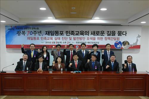 주제 발표에 이어 토론에 나선 심 의원은 "재일동포 민족교육 문제는 위기라고 하기도 이미 늦은 상황이 아닌가 우려스럽다"며 "위원회를 설치해 각계 전문가와 관련 부처가 머리를 맞대고 구체적인 방안을 마련해야 한다"고 촉구했다.