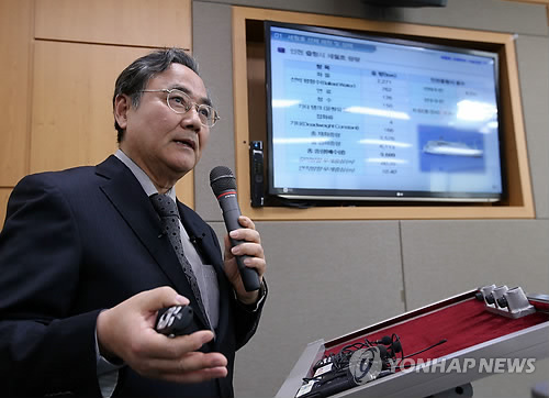 | △ "세월호 기술적으로 인양 가능" (세종=연합뉴스) 한종찬 기자 = 10일 오후 정부세종청사 해양수산부 기자실에서 세월호 인양 기술검토 TF 팀장인 이규열 서울대 조선해양공학과 명예교수가 세월호 선체처리 기술검토 결과발표를 하고 있다. 해양수산부는 이날 "시뮬레이션 조사 결과 세월호 인양은 기술적으로 가능하다"며 "선체인양이 결정된다면 경험과 기술이 풍부한 인양업체가 충분한 사전 검토를 통해 위험 및 불확실성을 최소화해야 한다"고 밝혔다. 2015.4.10 saba@yna.co.kr |