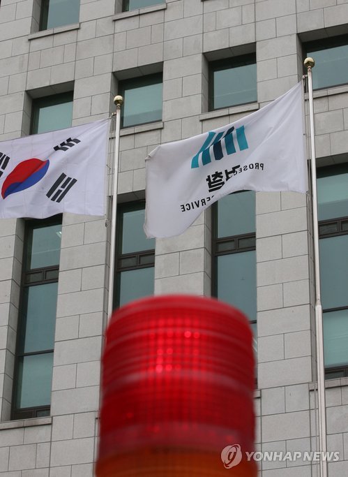 | △ 검찰, '성완종 리스트' 수사착수 (서울=연합뉴스) 김주성 기자 = 검찰이 성완종 전 경남기업 회장의 정치권 금품 제공 의혹에 대해 정식 수사에 착수한다. '성완종 리스트' 수사착수 및 수사팀 구성을 논의하기 위한 대검찰청 긴급 간부회의가 소집된 12일 오후 서울 서초동 대검찰청에 게양된 검찰 깃발이 펄럭이고 있다. 2015.4.12 utzza@yna.co.kr |