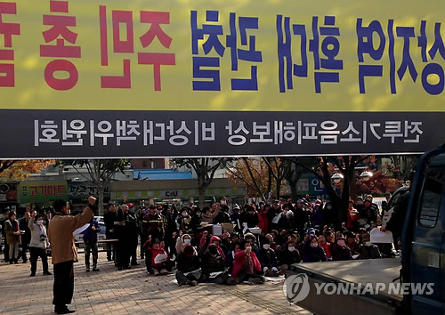 | △ 대구 동구 주민들이 2013년 11월 K-2 전투기 소음 피해 보상을 요구하고 있다. <<연합뉴스DB>> |