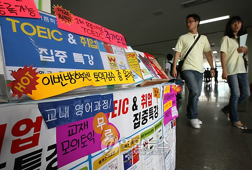 토익은 취직을 위한 필수 시험이며 한해 국내에서만 약 200만명이 응시한다. 비용만 총 수백억원에 이른다. 2010년 기준으로 한국 응시자가 전 세계 응시자의 약 3분의 1에 달한 것으로 알려졌다.