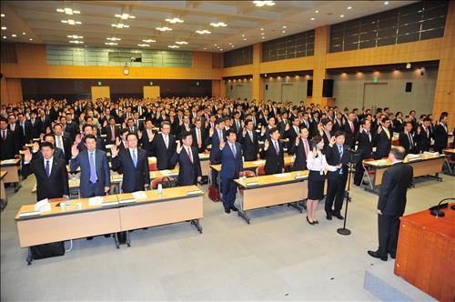 <17일 오후 서울 충정로 본사 대강당에서 열린 농협은행의 '민원예방 8대 실천과제' 선포식 모습.>