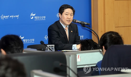 | △ 유기준 해양수산부 장관이 지난 20일 오후 정부세종청사 해수부 기자실에서 열린 출입기자단 간담회에서 세월호 선체인양 결정을 위해 중앙재난안전대책본부에 심의를 요청했다고 밝히고 있다. |