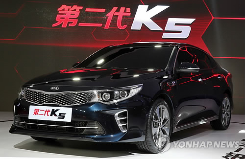 | △ 기아자동차가 지난 20일 중국 상하이 컨벤션센터에서 열린 '2015 상하이 국제모터쇼' 언론공개일 행사에서 중국에 최초 공개한 '신형 K5’ 차량.(기아차 제공) |