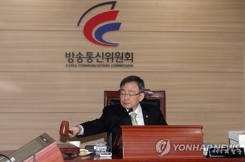 | △ 방통위 전체회의 최성준 방송통신위원장이 24일 오전 정부과천청사 방송통신위원회 회의실에서 열린 전체회의에 참석해 회의를 주재하고 있다. 2015.4.24 << 방송통신위원회 제공 >> |