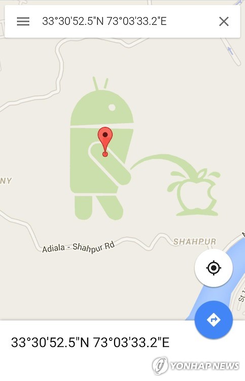'애플에 오줌 깔기는 안드로이드' 구글 지도에 한때 표시