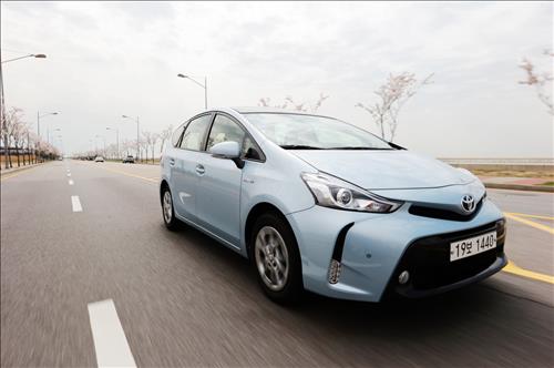 (서울=연합뉴스) 김윤구 기자 = 이달 초 국내에 출시된 도요타 프리우스V는 아웃도어 활동을 위해 뒷자리와 트렁크 공간을 늘린 패밀리카다.하이브리드카의 대명사인 프리우스가 몸집을 키운 것이다.