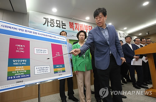 자치단체의 전체 세출이 같은 기간 176조9천920억원에서 180조8천754억원으로 2.2% 늘어난 것과 비교하면 증가폭이 4배나 크다.