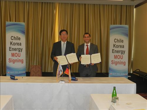 | △ 한국전력이 22일(현지시간) 칠레 산티아고에서 칠레투자청과 발전사업 투자 협력 MOU를 맺었다. |