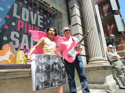 △ 한국계 행위예술가 유방암으로 가슴을 잘라낸 뒤 '가슴이 없는 여성도 아름답다'면서 가슴노출 행위예술을 펼치고 있는 모습<자료사진>