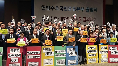 (서울=연합뉴스) 설승은 기자 = 보수성향 단체인 옛 통진당해산국민운동본부가 통합진보당 해산에 따라 헌법수호국민운동본부로 명칭을 변경해 활동을 시작했다.