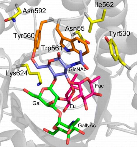 | △ 폐렴연쇄상구균(SP3-BS71)에서 찾아낸 배당체 가수분해효소(Sp3GH98) 구조 그림. 이 효소는 A형과 B형 혈액의 적혈구 표면에 있는 거부반응 원인 물질인 항원을 제거해 혈액형에 관계 없이 수혈할 수 있는 O형으로 바꿔준다. 캐나다 브리티시컬럼비아대 제공. |