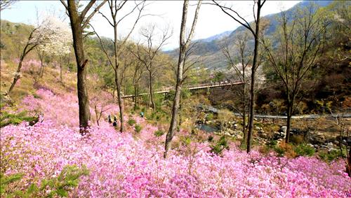 봄의 시작을 알리는 연분홍 진달래가 피고 진 자리에 봄기운을 한껏 머금은 진분홍 철쭉의 향연이 펼쳐진다.