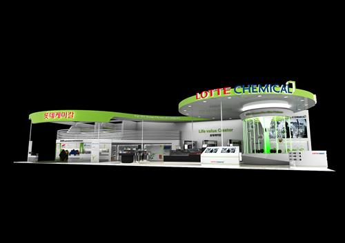 롯데케미칼은 이번 전시회 부스의 지붕을 영화 스타트랙의 엔터프라이즈호를 떠오르게 할만큼 높고 넓은 원형으로 설계해 강인한 도전 정신과 모험심을 나타냈다. 친환경의 녹색 이미지를 전 부스에 부각했다.