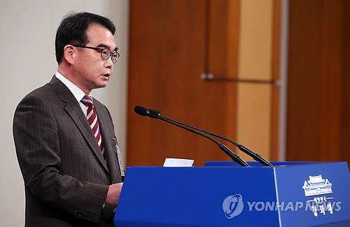 | △ 김성우 홍보수석이 7일 춘추관 브리핑을 통해 공무원연금개혁법안의 4월 국회 처리 무산과 관련 "국민 약속 지키지 못해 유감"이라고 말했다. |